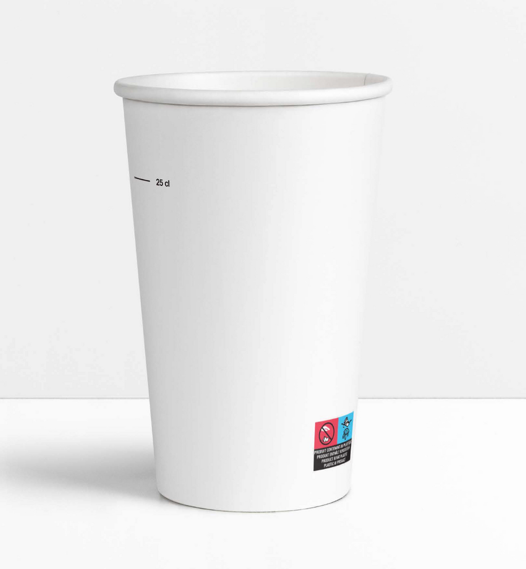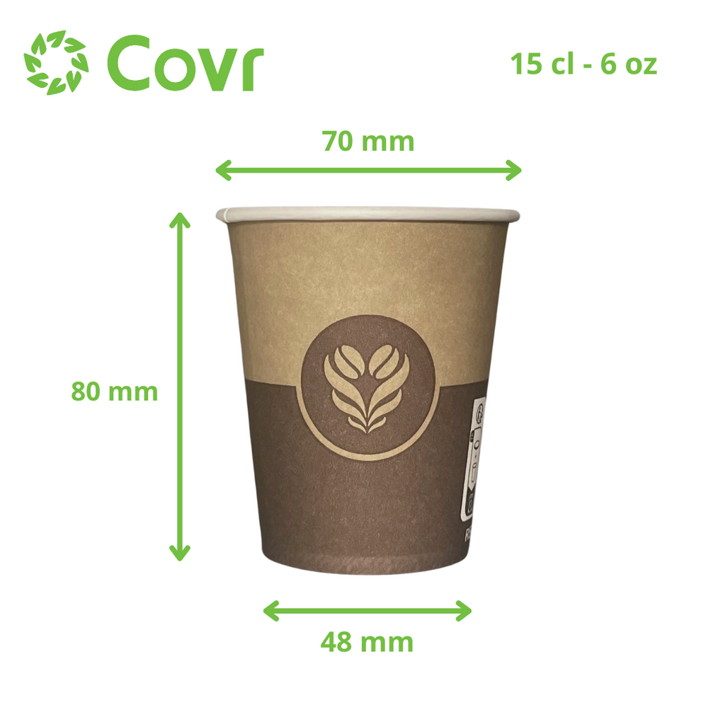 To meet your every need, Covr, supplier of paper cupsoffers a wide range of cups sizes. You can find on our site 10 cl paper cups, 12 cl paper cups, paper cups 15 cl, paper cups 18 cl, paper cups 20 cl, 21 cl paper cups, 25 cl paper cups, 30 cl paper cups, paper cups 33 cl, paper cups 40 cl, paper cups 42.5 cl, paper cups 50 cl and 65 cl paper cups. In this range, we offer brown paper cups and white paper cups but we can also offer you personalized paper cups with your own design. We also offer cup categories such as takeaway coffee cup and the paper cup for hot drinksboth of which require a double wall. Finally, Covr offers you paper cups with PE coating or plastic-free paper cups.