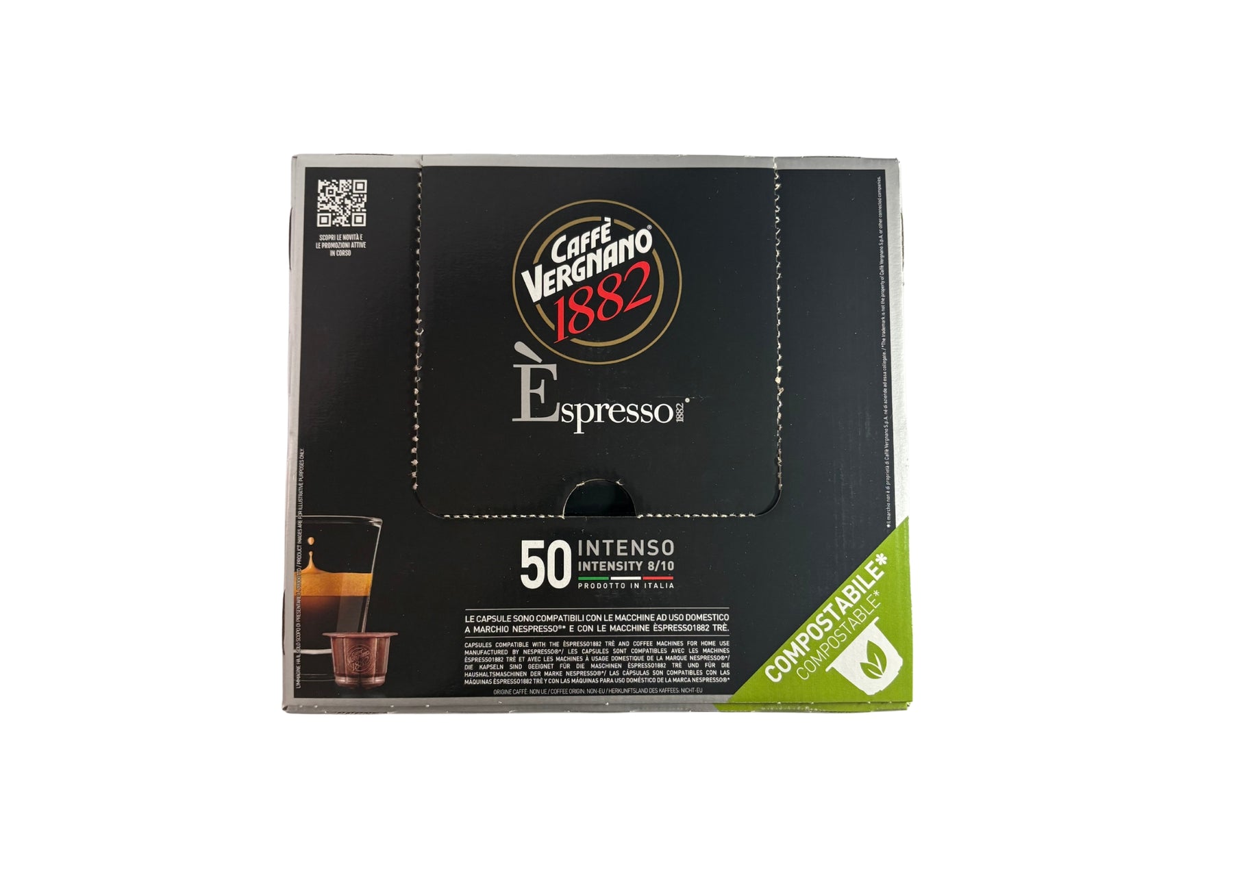 Cápsulas Espresso Intenso de Caffè Vergnano están especialmente diseñados para ofrecer un café italiano con cuerpo, aroma profundo y cuerpo generoso. Compatibles con todas las máquinas Nespresso® OriginalAdemás de su excelente calidad, son la solución ideal para los profesionales de la restauración, la hostelería y el catering que desean ofrecer un espresso intenso de calidad constante.