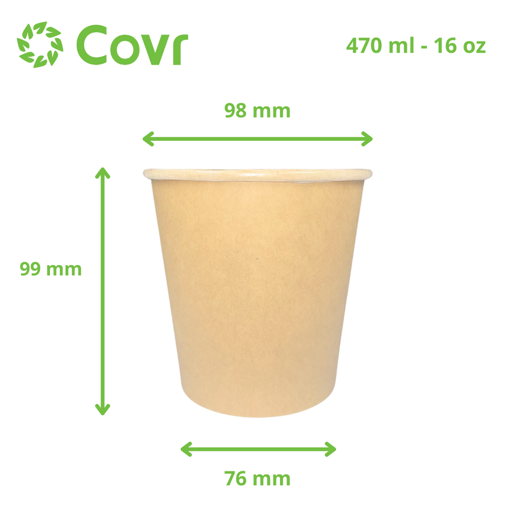 Destiné aux professionnels du secteur Horeca, ce bol à soupe en kraft de 480 ml (16 oz) marie fonctionnalité, résistance et engagement écologique. Conçu en matériau kraft de 300gsm avec un film PE de 18g, il assure une excellente tenue pour les plats chauds ou froids. Avec un diamètre de 98 mm en haut, 76 mm en bas, et une hauteur de 99 mm, il est parfait pour un service efficace et une manipulation aisée.