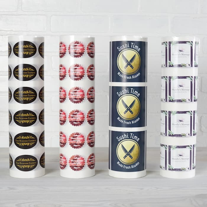 - Quantità disponibili: da 100 a 5.000 eetichette rotonde o quadrate in rotoli da 33 cm